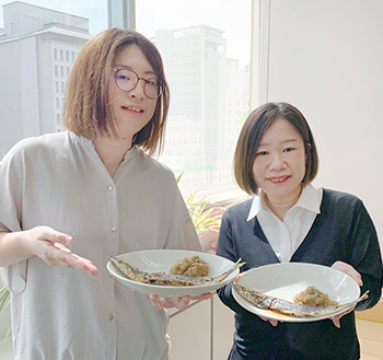 マヨネーズや一味、醤油をつけて、スタッフ各々夢中でいただきました。